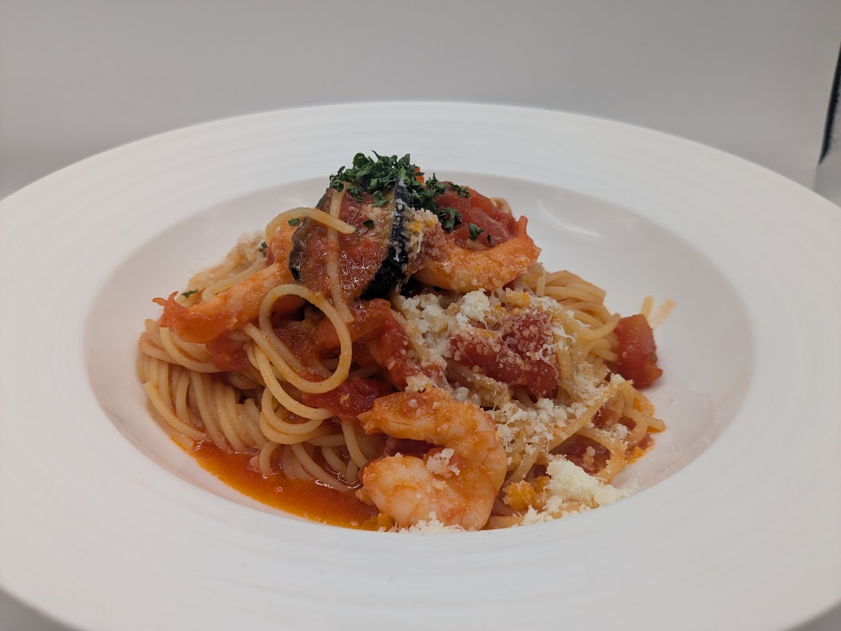 A.海老と茄子のトマトスパ
